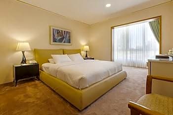 Our 75 square yards, Deluxe King Suite with three connected rooms enjoy a magnificent panoramic view of Amman. It features a fully controlled air conditioning, a 56 inch flat screen smart TV with access to YouTube and Netflix, free WiFi throughout the hotel campus, kettle, mini-bar, steam ironing kit, electronically controlled black out curtains, free toiletries, slippers, bathrobe and rainfall shower with tub or walk in shower.